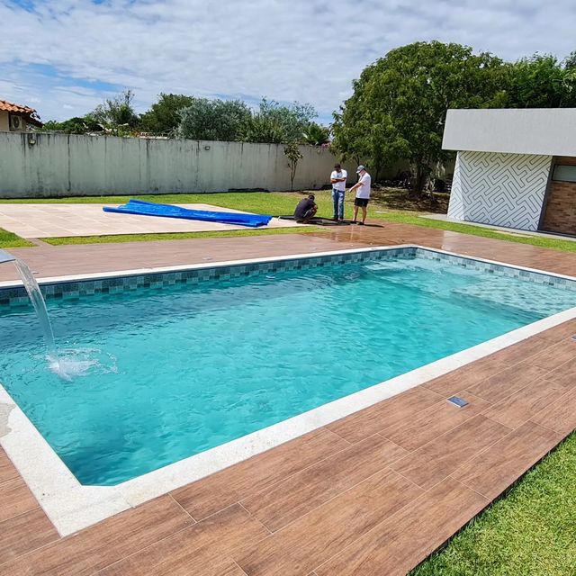 Segurança Técnica e Acabamento Premium. Da alvenaria robusta à instalação de equipamentos de ponta. Entregamos sua obra completa, com tecnologia de filtragem e aquecimento dimensionados para durar.